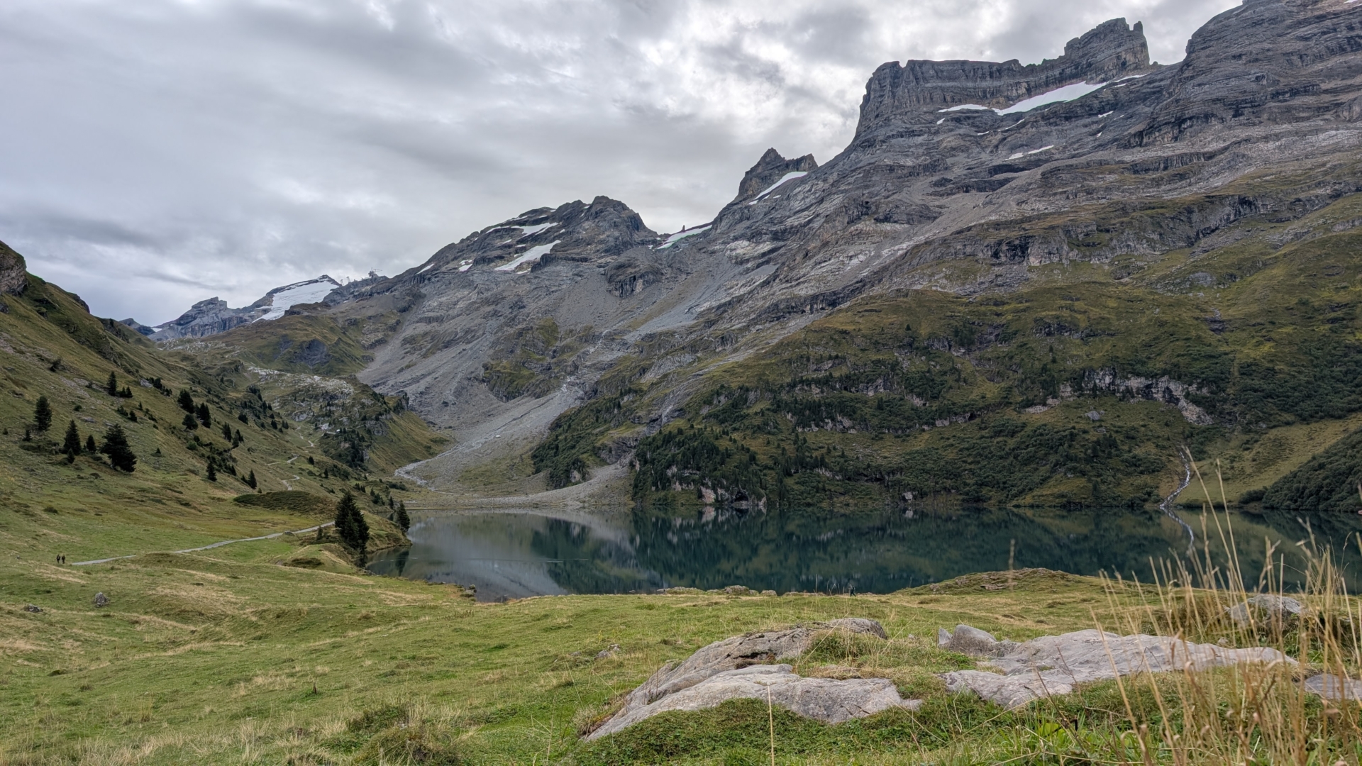 Von der Tannalp führte uns der Weg zur Engstlenalp, einem kleinen, idyllischen Ort am wunderschönen Engstlensee. Danach begann der Anstieg zum Jochpass – angenehm zu gehen und mit tollen Ausblicken. Oben angekommen, eröffnete sich erstmals seit ein paar Tagen wieder der Blick ins Mittelland: Flaches Land statt nur Bergketten. Ein Anblick, der Freude bereitete, aber gleichzeitig auch die Erinnerung weckte, dass die Via Alpina langsam ihrem Ende entgegen geht.