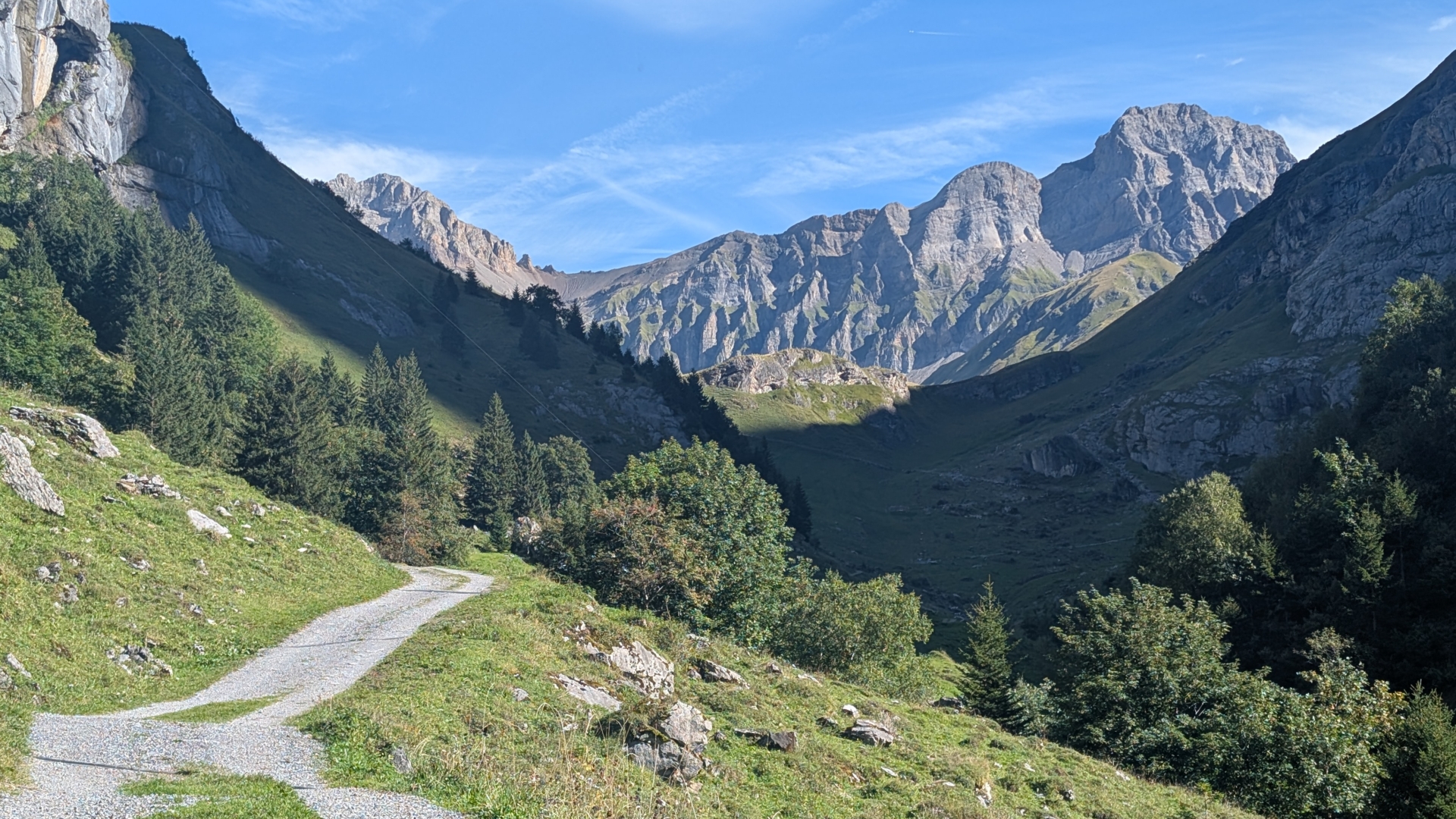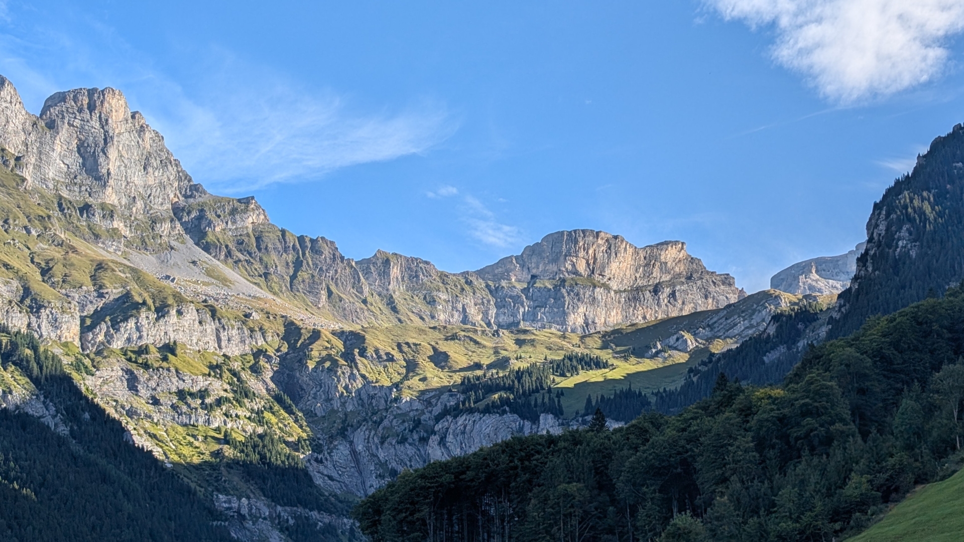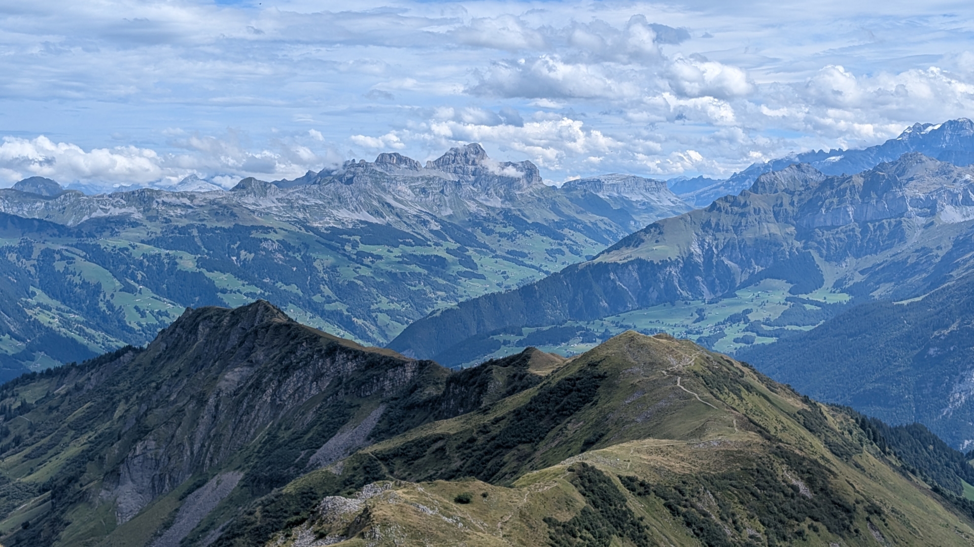 Oben gönnte ich mir nur eine kleine Pause, bevor ich den langen Abstieg in Angriff nahm: Fast 2’000 Höhenmeter hinunter nach Altdorf. Der Weg zog sich entsprechend lange hin. Immer wieder warf ich einen Blick aufs Regenradar, doch Glück hatte ich heute – es blieb trocken. Zwar hätte ich unterwegs eine Seilbahn zur Abkürzung nutzen können, aber ich entschied mich, konsequent zu Fuss zu gehen.