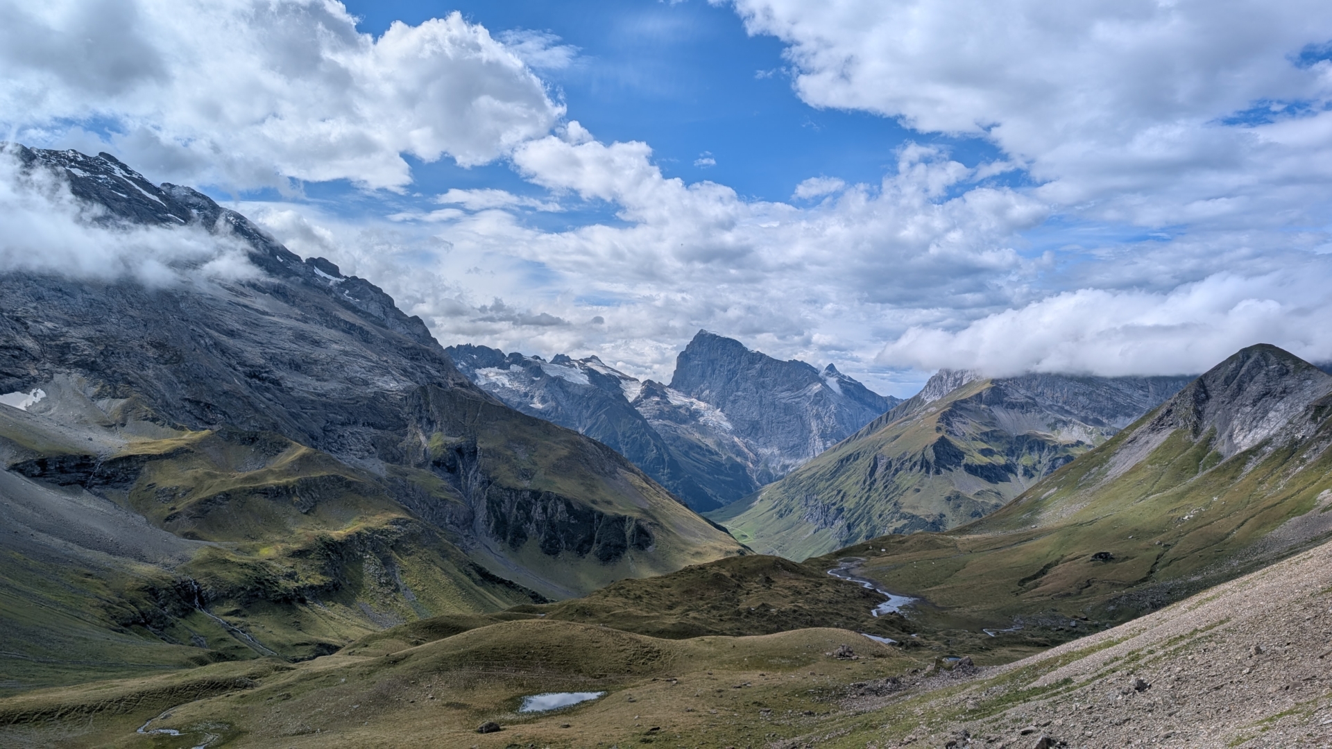 Das Wetter war unsicher, Gewitter nicht ausgeschlossen. Also legte ich von Beginn an ein zügiges Tempo vor. Zunächst verlief die Strecke noch flach, dann wurde der Anstieg zunehmend steiler, bis ich schliesslich den Surrenenpass erreichte. Hinter mir sammelten sich immer wieder dunkle Wolken, doch kurz vor dem Pass lichtete sich der Himmel – ein Moment der Erleichterung.