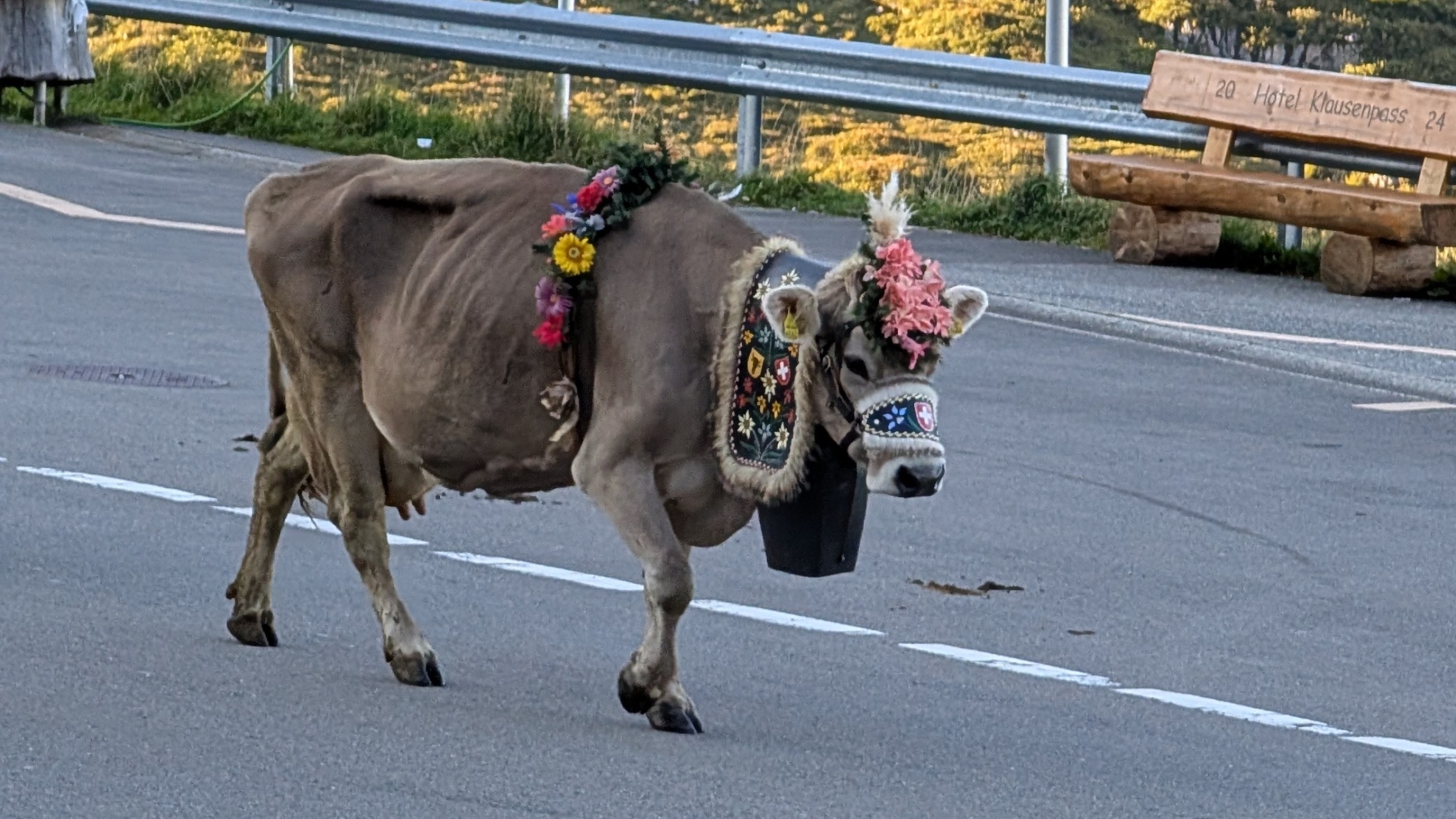 Der Tag begann früh – sehr früh. Bereits um 6 Uhr wurde ich geweckt, allerdings nicht von meinem Wecker, sondern vom lauten Kuhglocken eines Alpabzugs direkt vor dem Hotel. Ich stand auf und beobachtete das Schauspiel. Es folgten noch zwei weitere, die ich natürlich ebenfalls aufmerksam verfolgte.