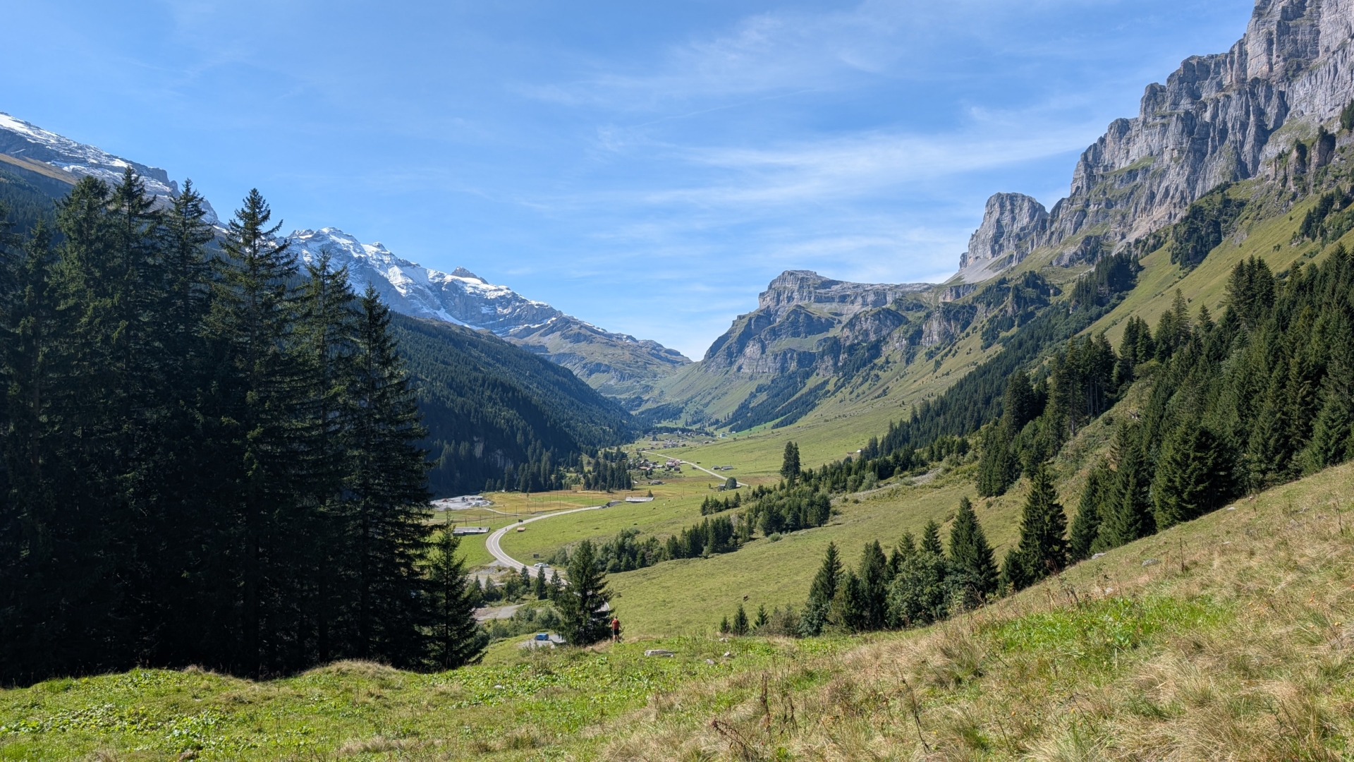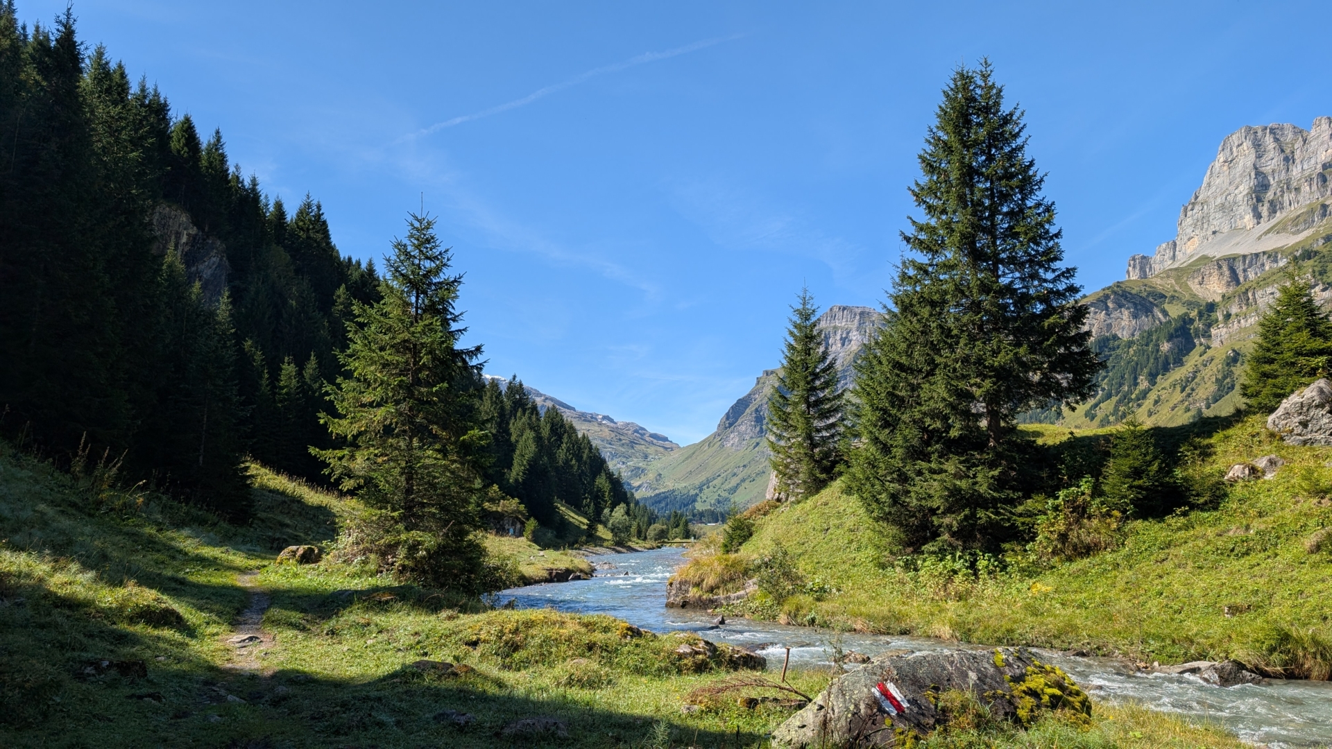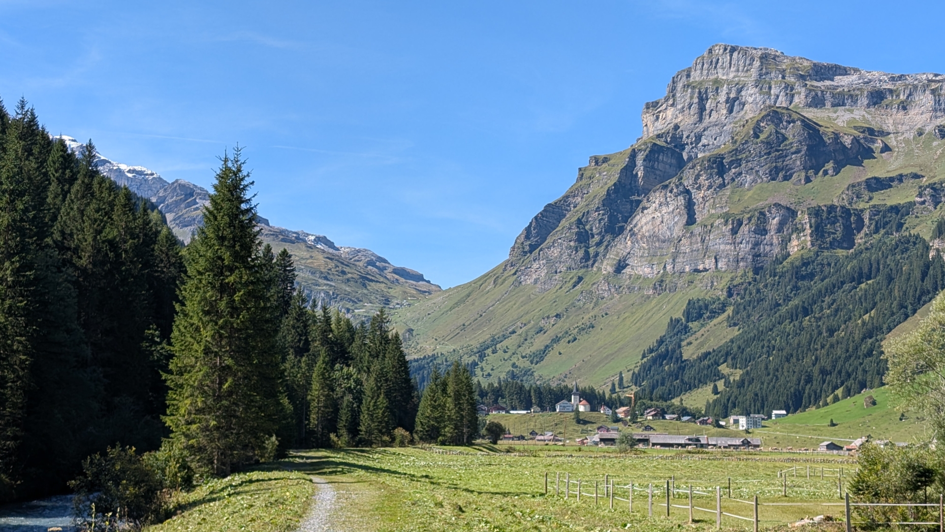 Beim.Urnerboden wurde das Gelände flach und ich genoss es sehr, einmal nicht ständig bergauf oder bergab gehen zu müssen. Doch am Ende des Plateaus wartete nochmals ein kurzer Aufstieg, bevor es weiter nach Braumwald ging und von dort runter nach Linthal.